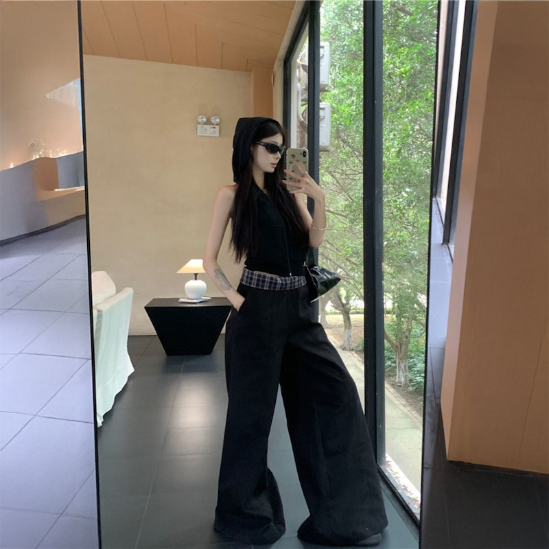 ウエストチェック折り返しワイドパンツ