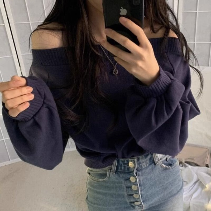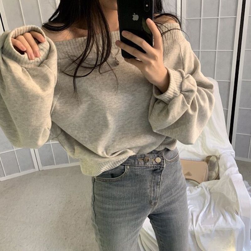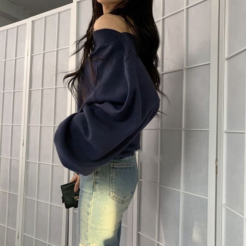 オフショルダーライトニット