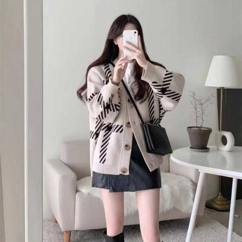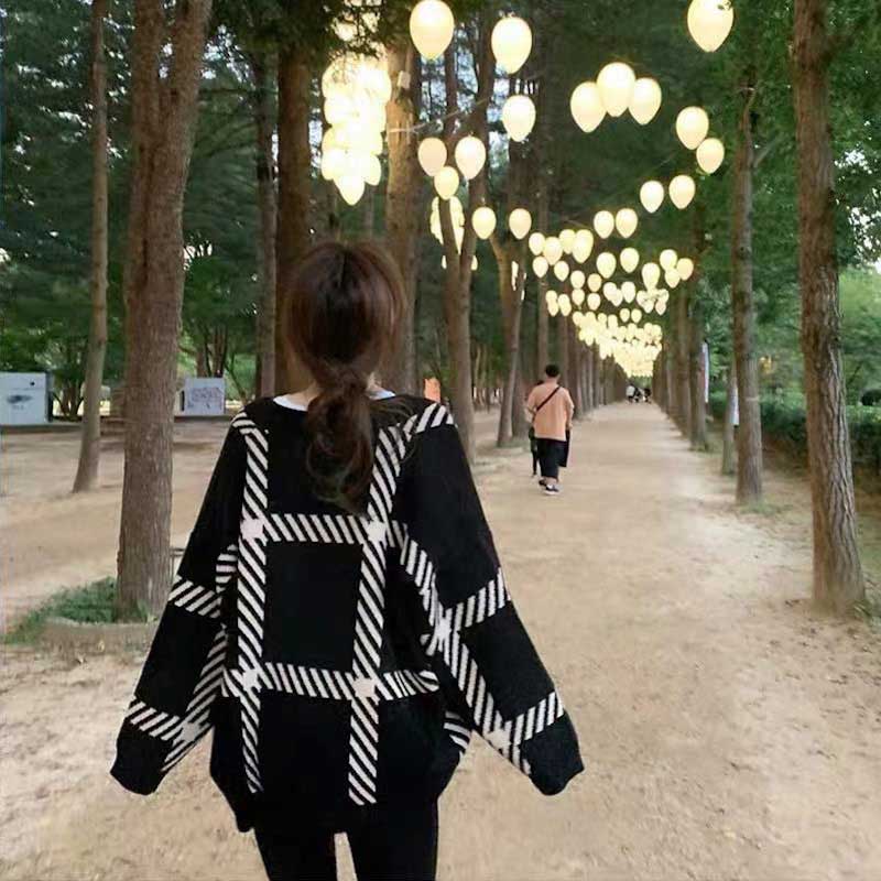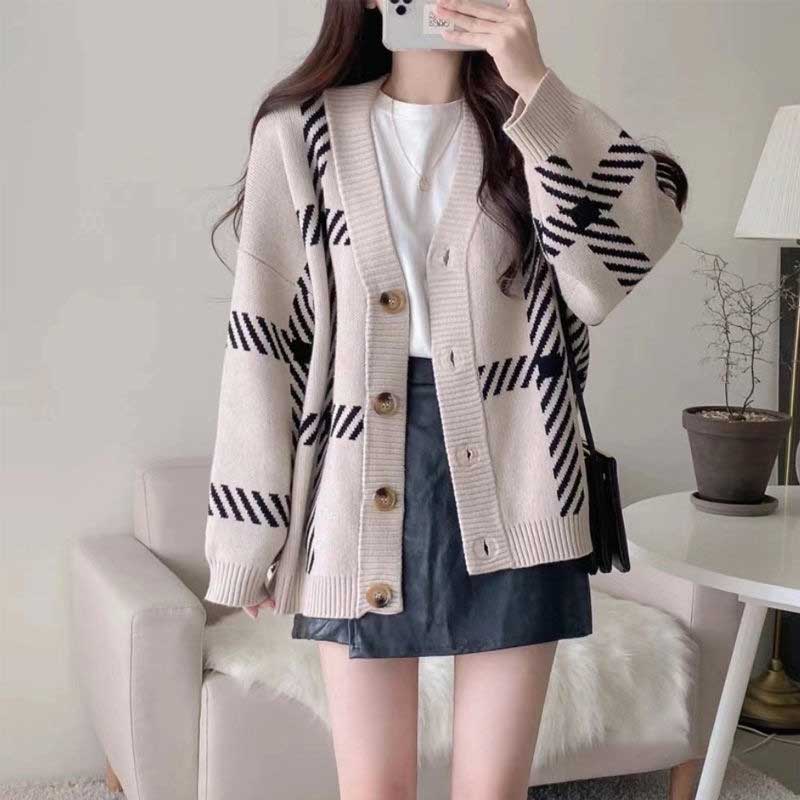 オーバーチェックカーディガン