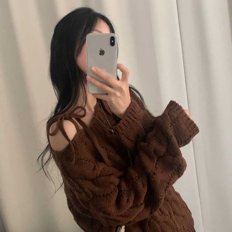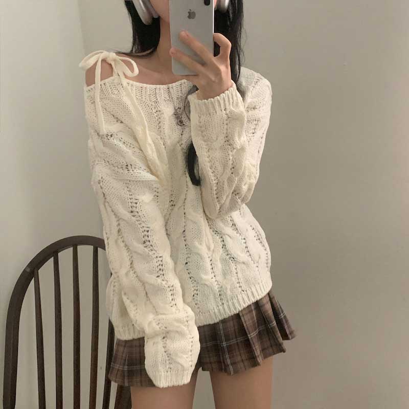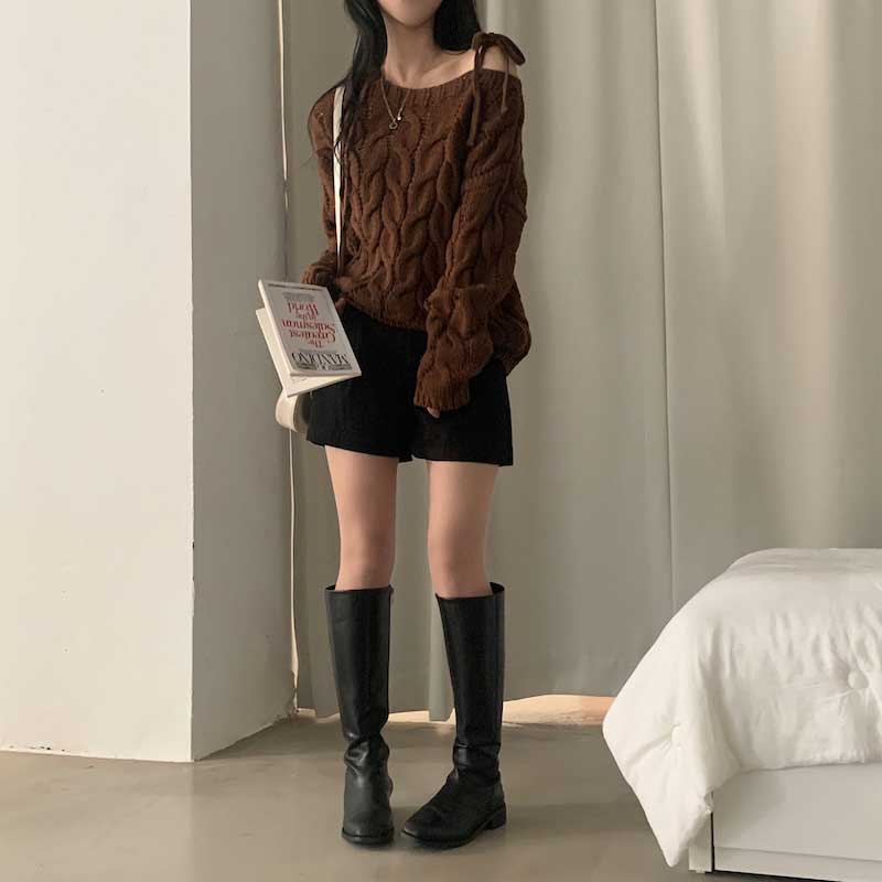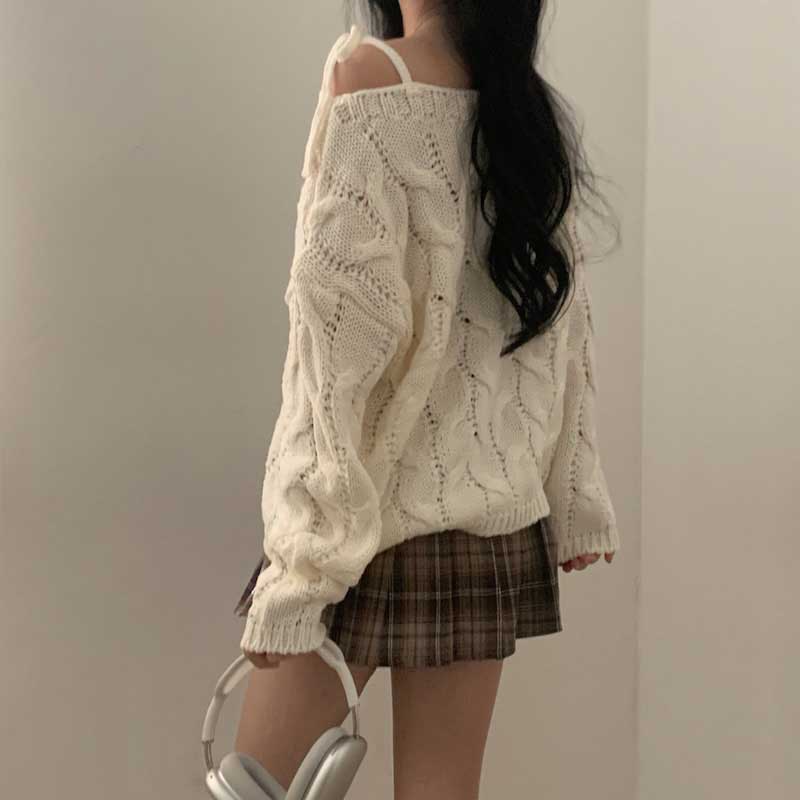 ショルダーストラップケーブルニット
