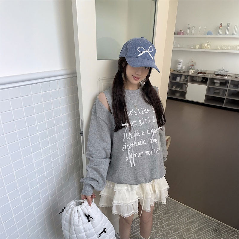 ショルダースリットロゴリボンスウェット