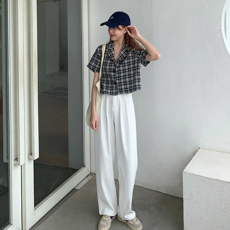 サイズを選ぶときから脚の長さにあったサイズが無いのは分かっていたんだけど、かわいすぎたから!だけど、ちょっとズボンおろしても落ちてこないから平気だった🙆🏻♀️わたしはインしないでTシャツとかそのまま着るタイプだからウエストも隠れる!だからほんとに平気だったかわいい!!100点🤍🤍