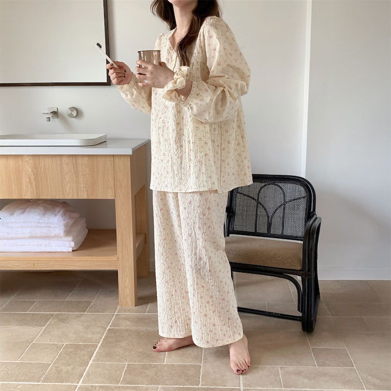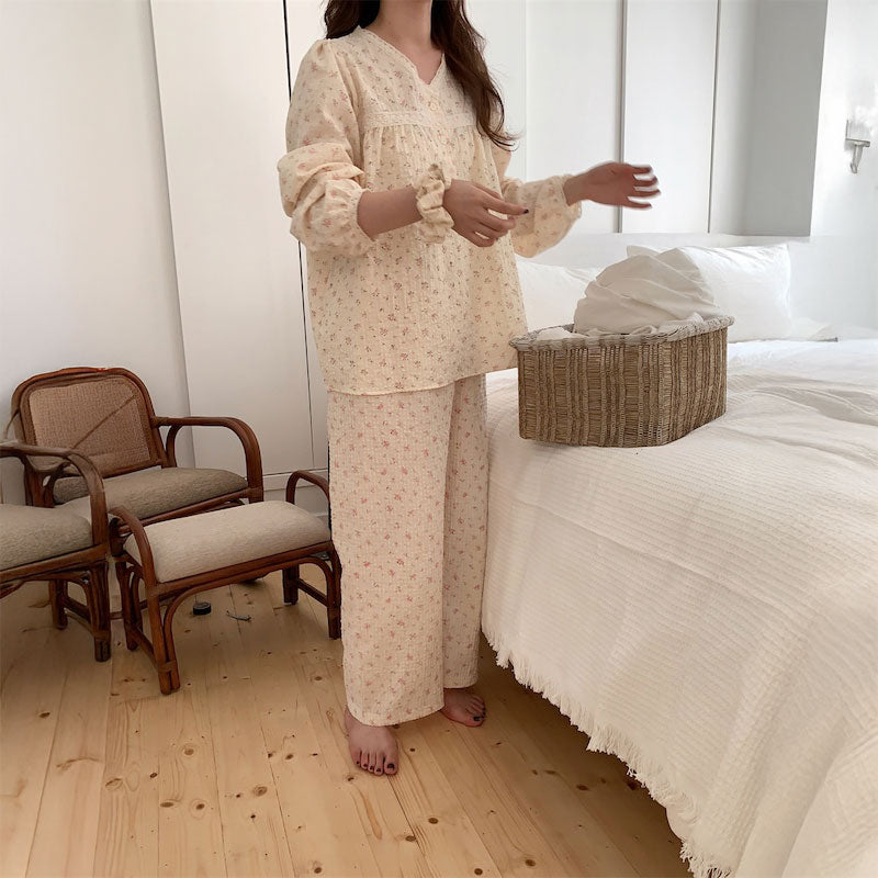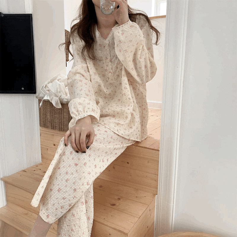 ソフトリネン小花ルームウェア