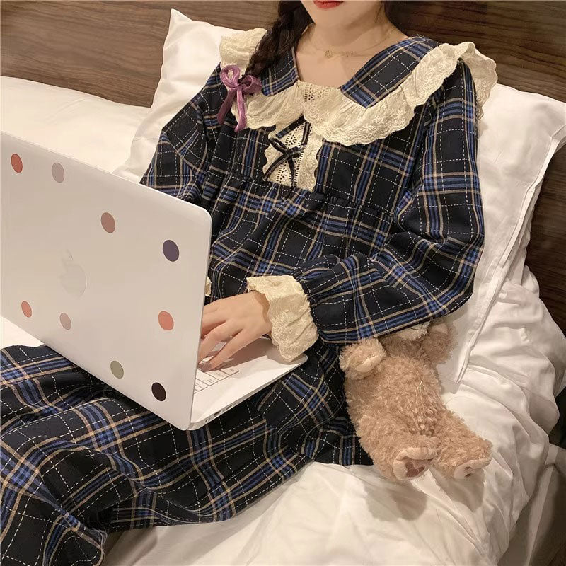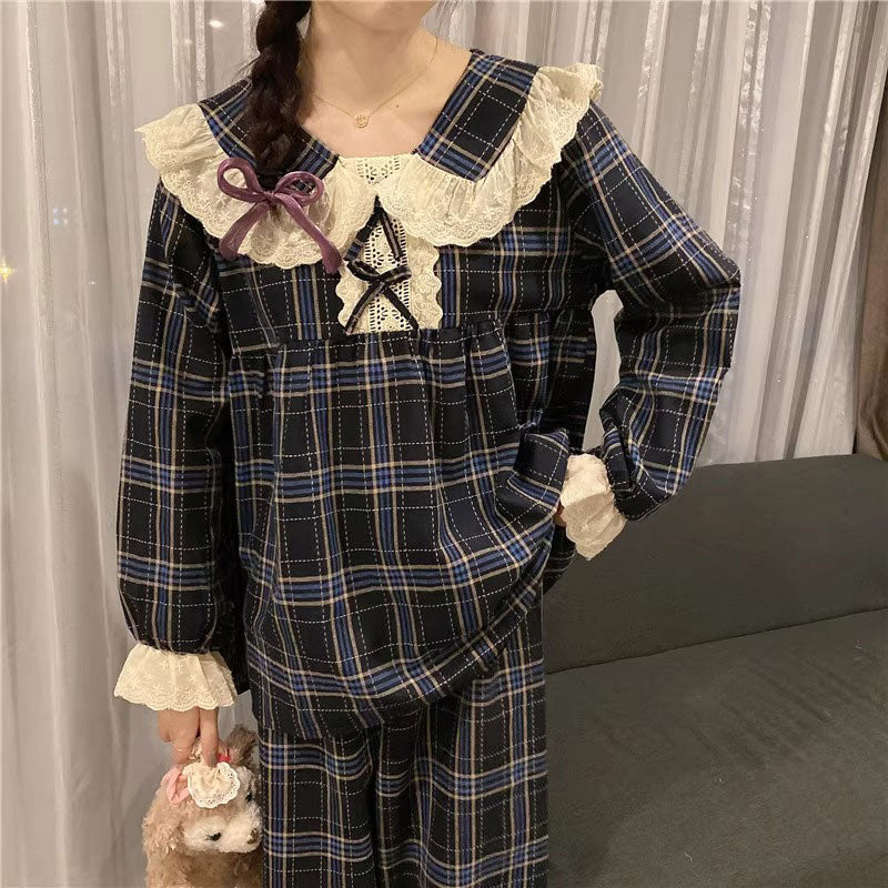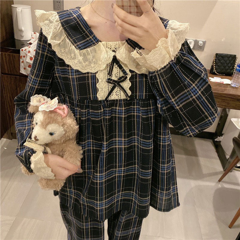 タータンチェックフリルルームウェア