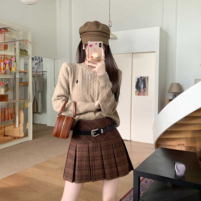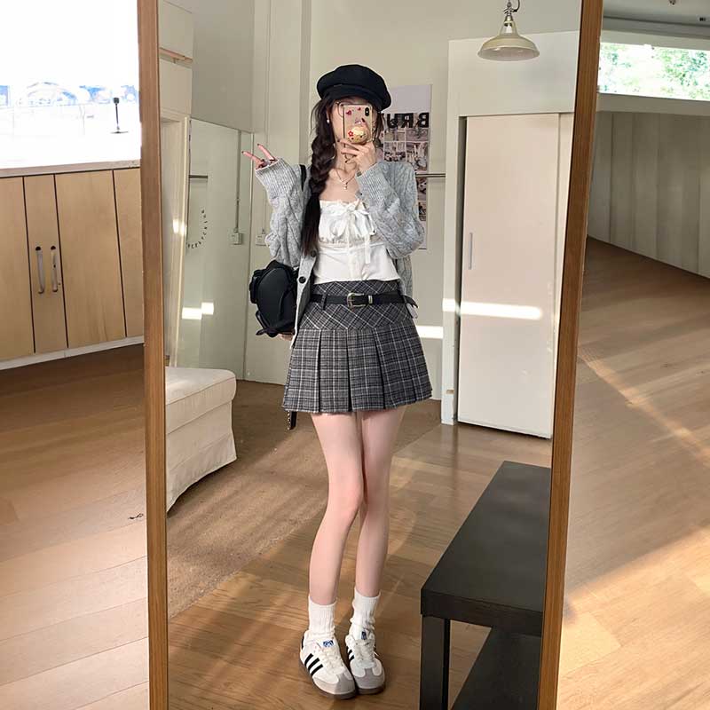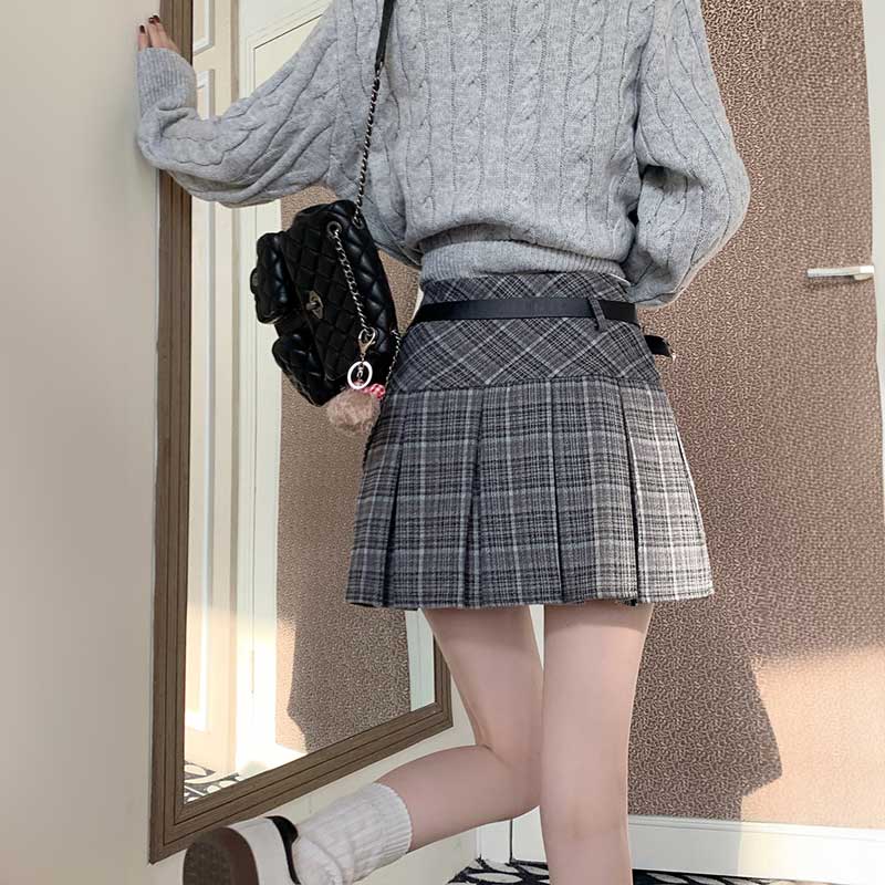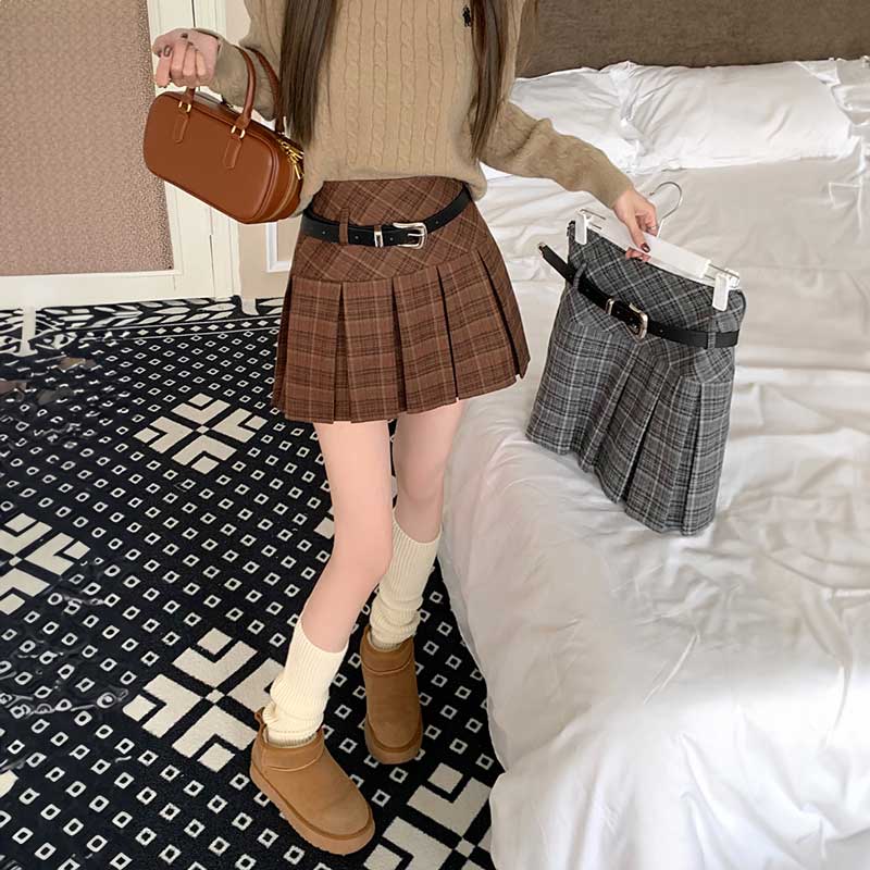 タータンチェックベルトプリーツスカート