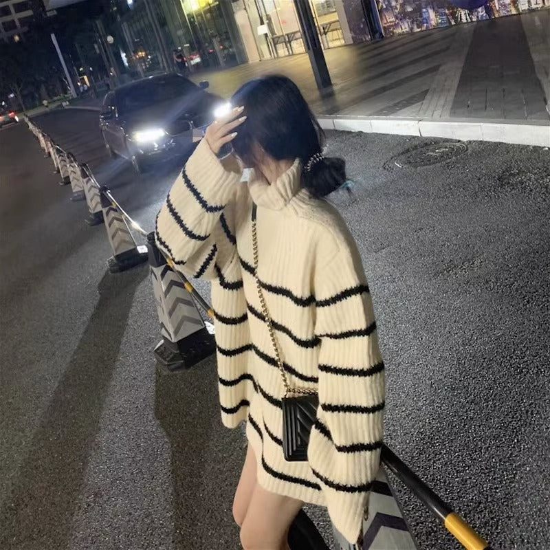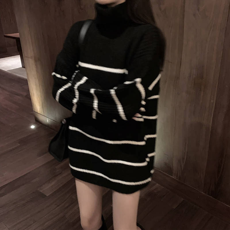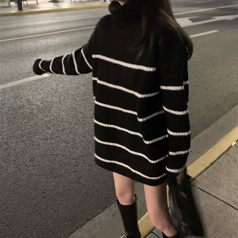 タートルネックボーダービッグニット