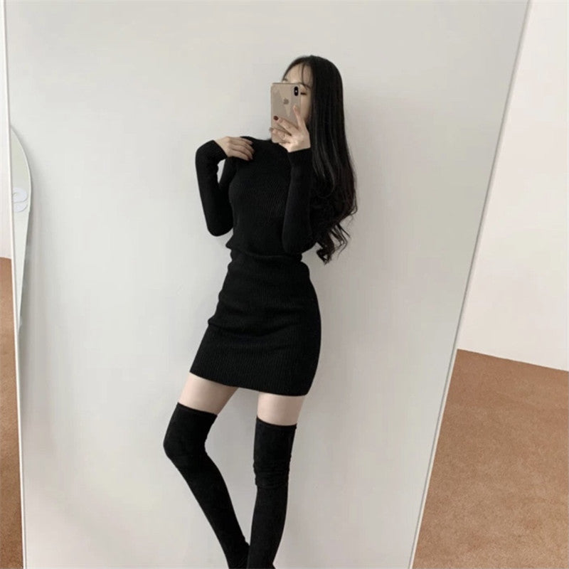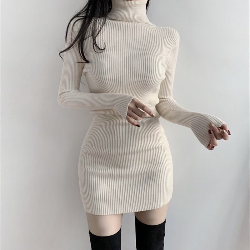 タートルネックリブワンピース