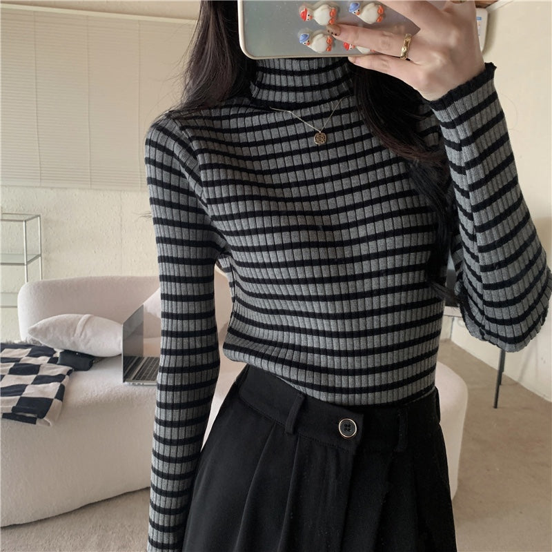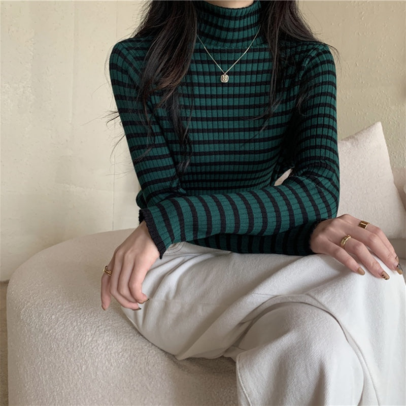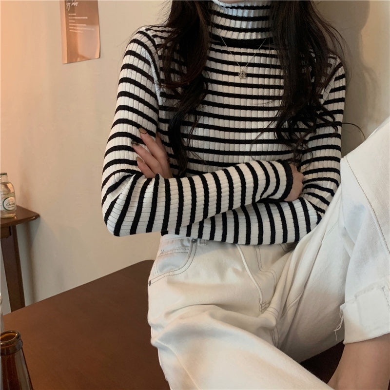 タートルボーダーリブニット