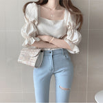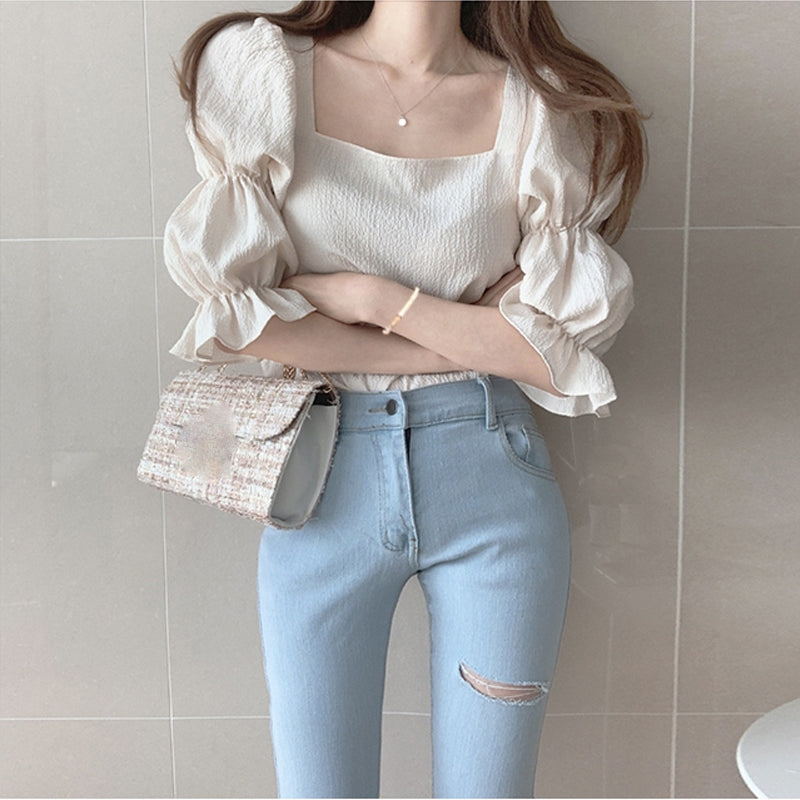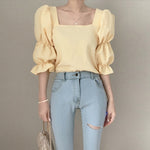 ダブルパフスクエアネックブラウス