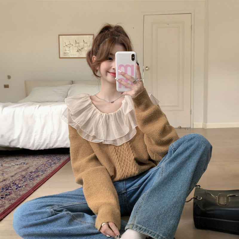 ダブルフリルケーブルニット