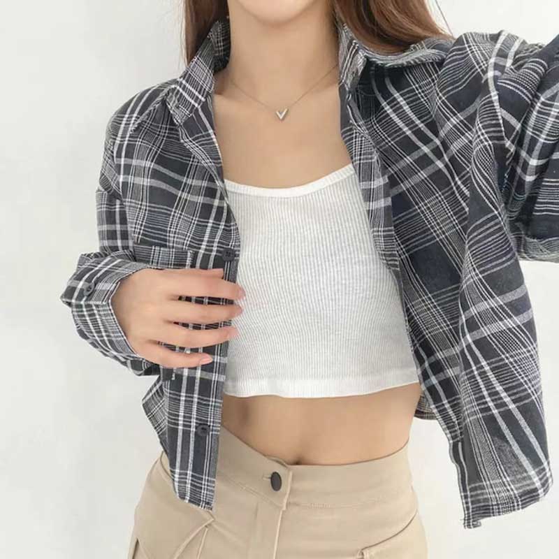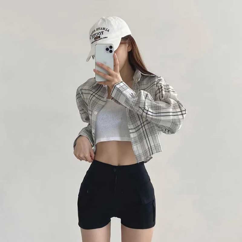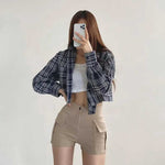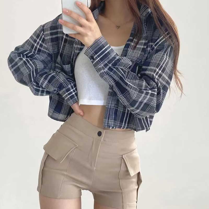 チェックカジュアルクロップドシャツ