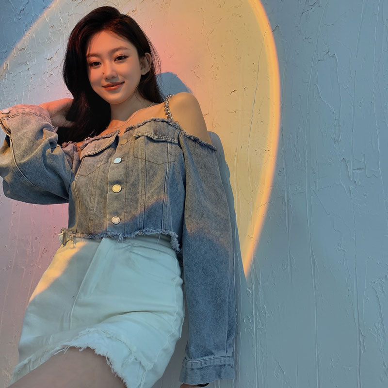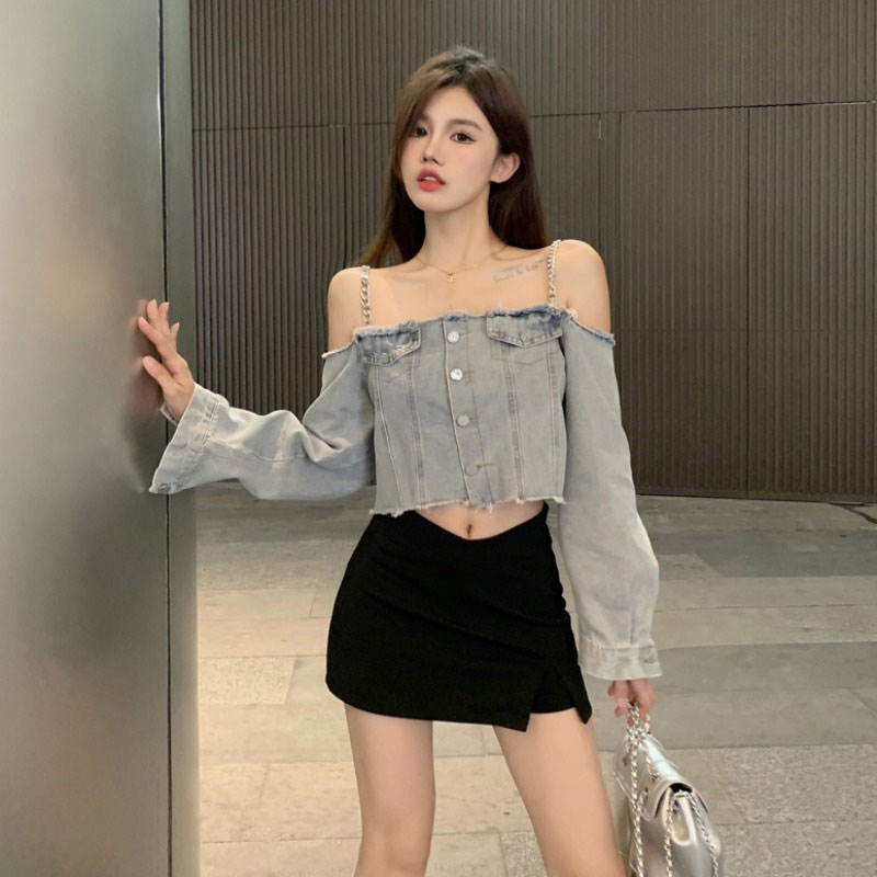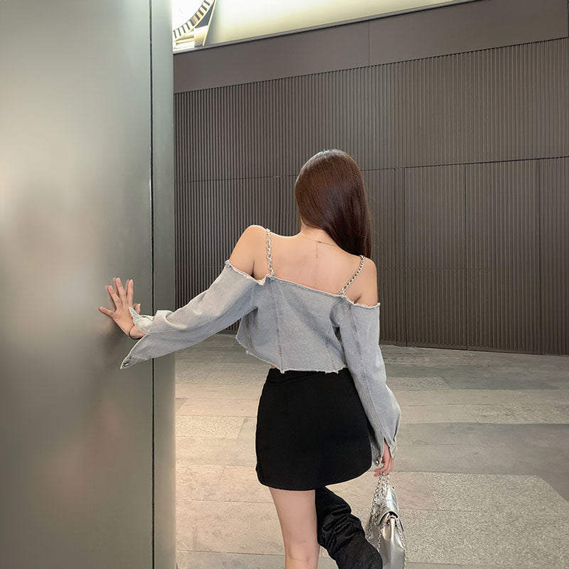 チェーンショルダーデニムトップス