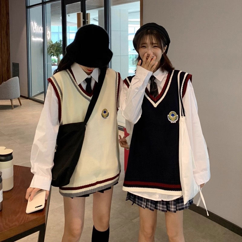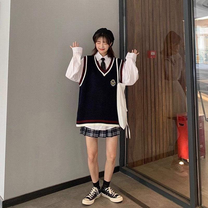トリコロールアクセントニットベスト