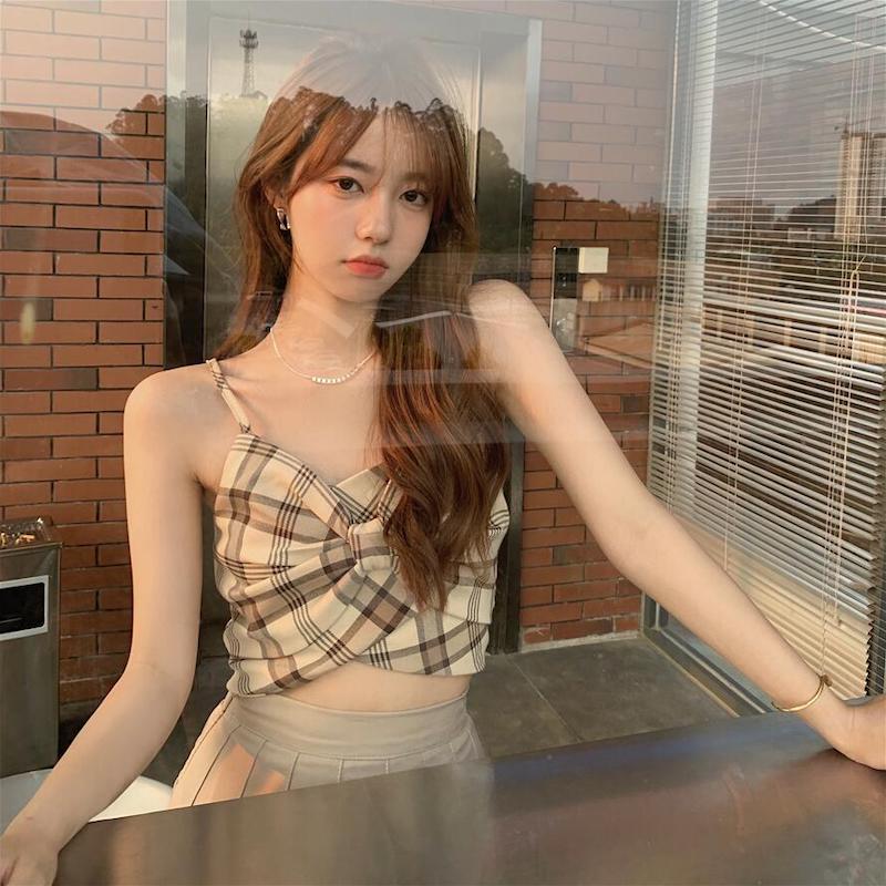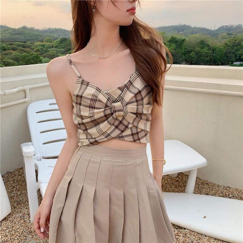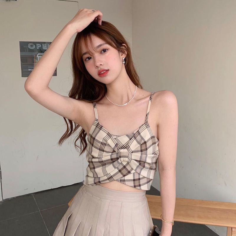 フロントリボンチェックキャミソール