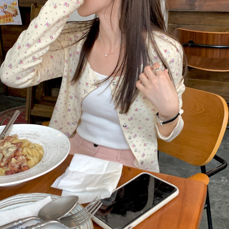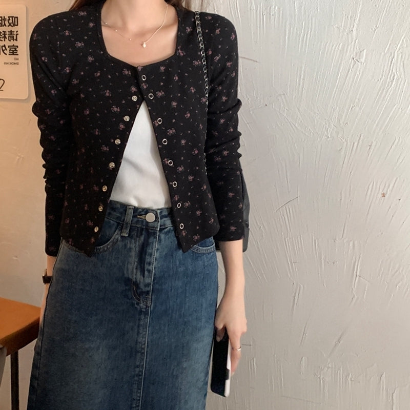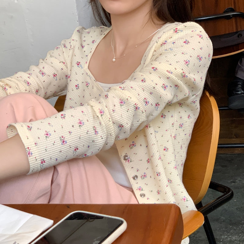 プチフラワースクエアネックカーディガン