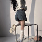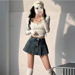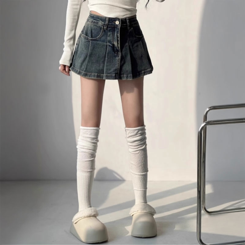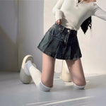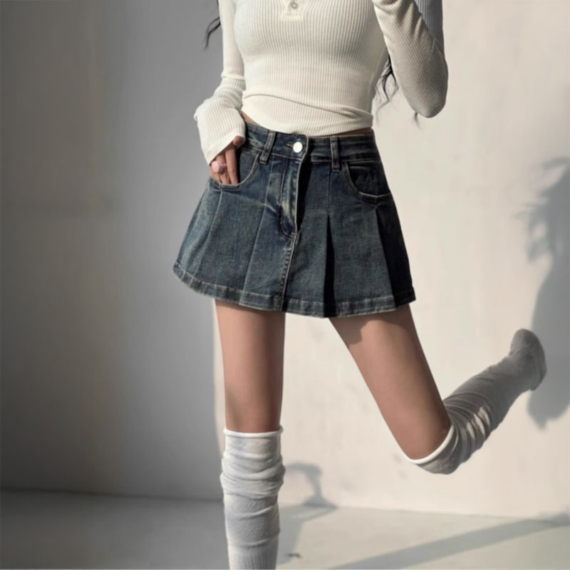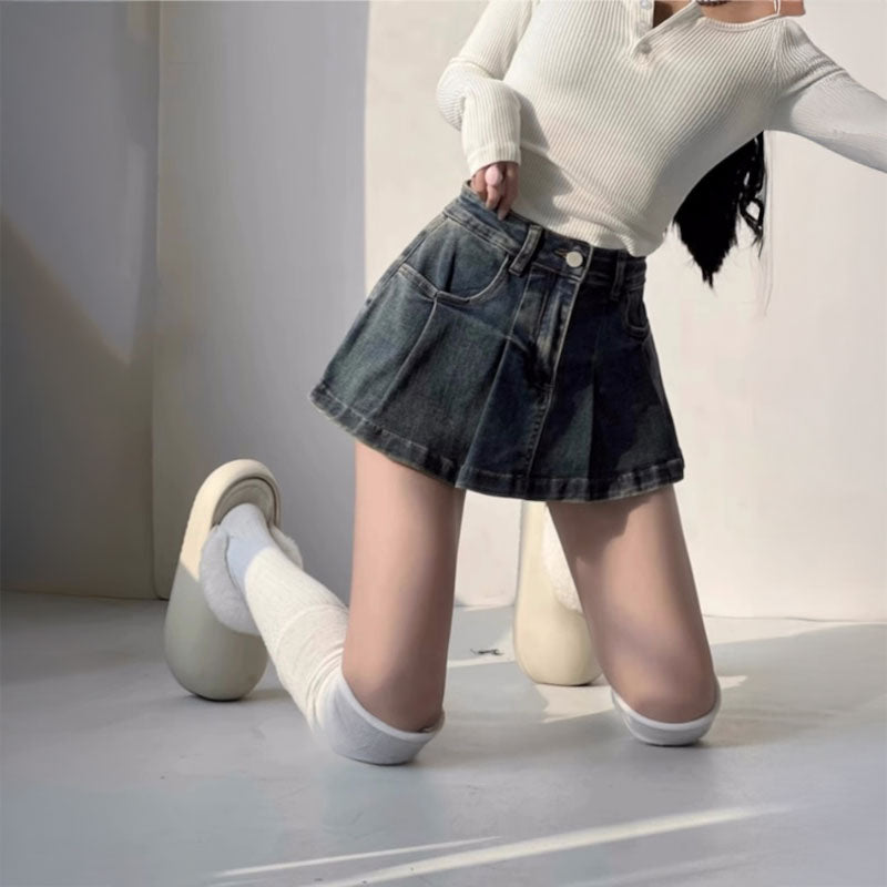 プリーツデニムスカートパンツ