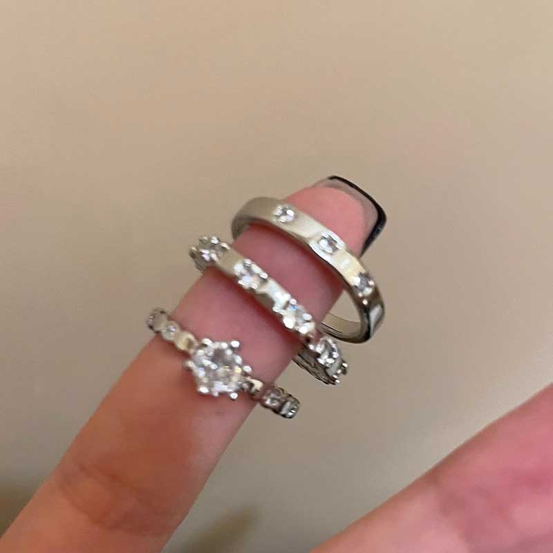 ホワイトシャイニングストーンリング3点SET