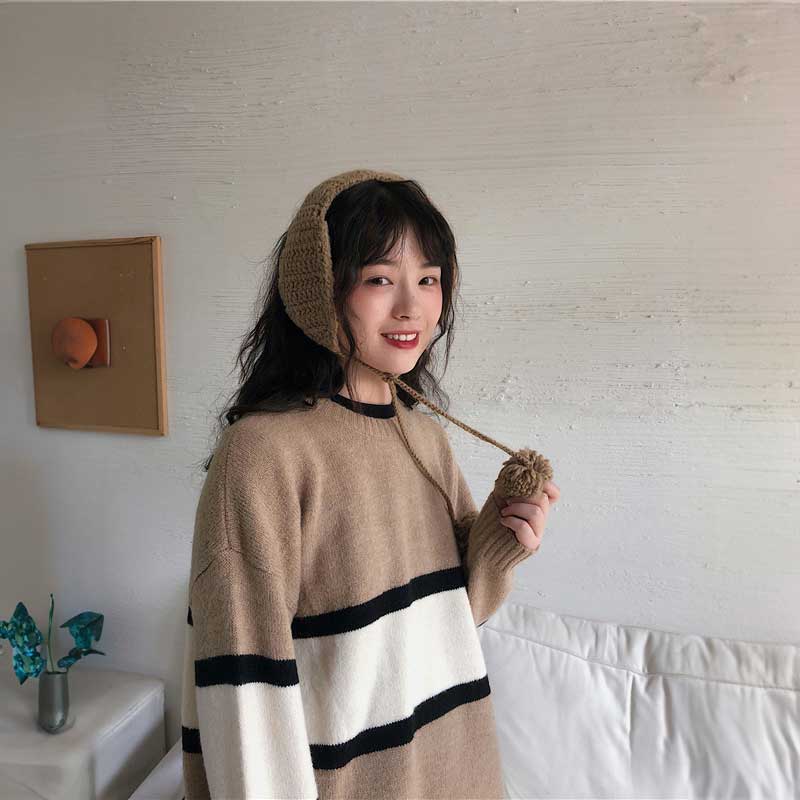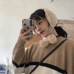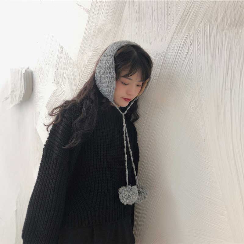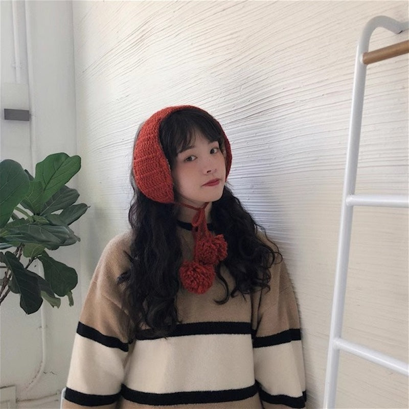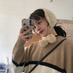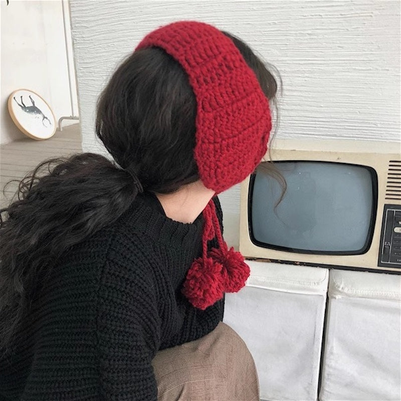 ボンボンケーブルニットイヤーマフ