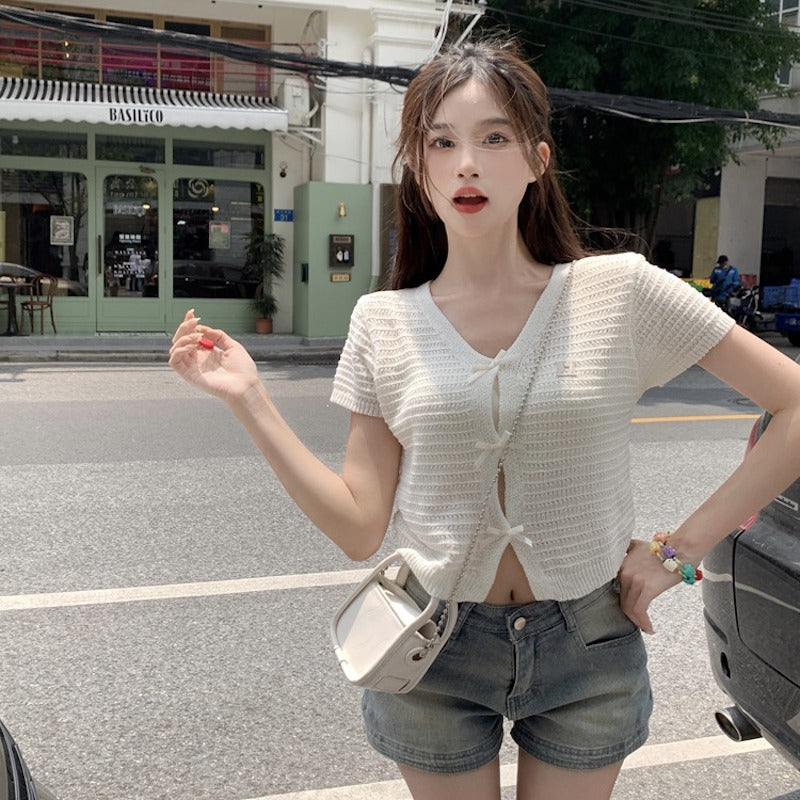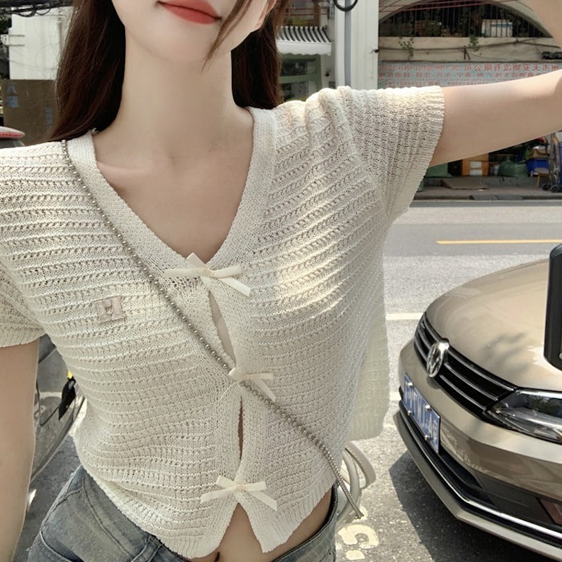 ミニリボンケーブルカーディガン
