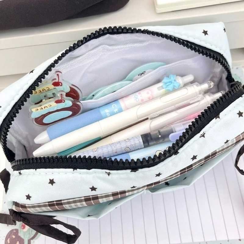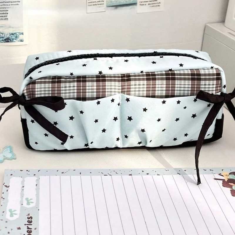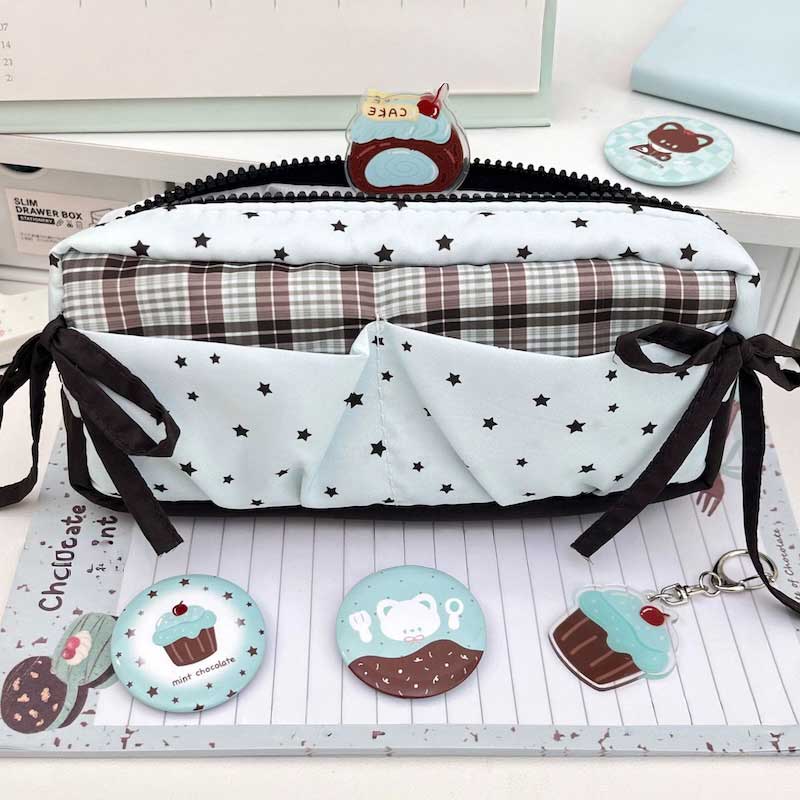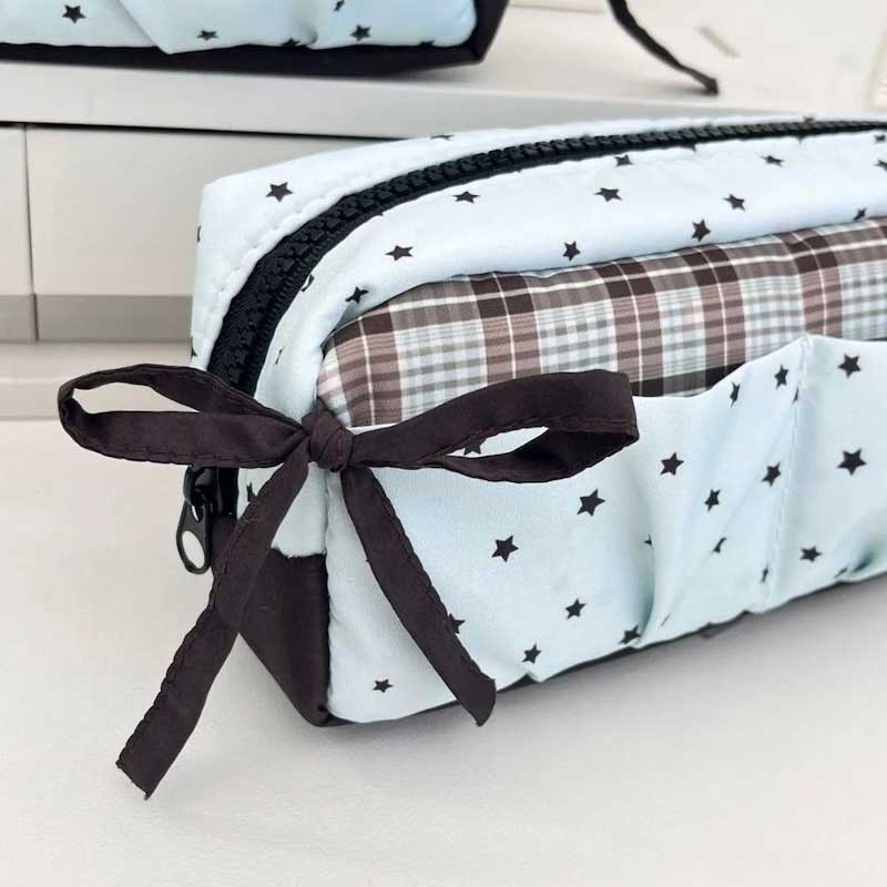 ミントギンガムスターリボンペンケース