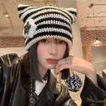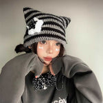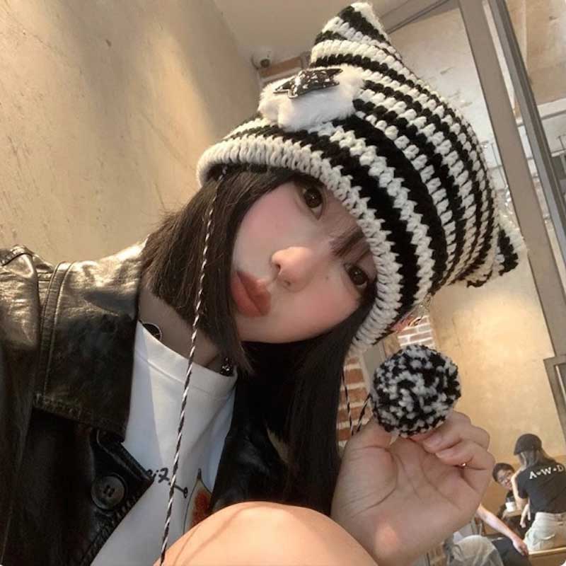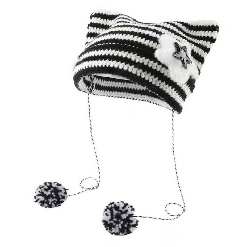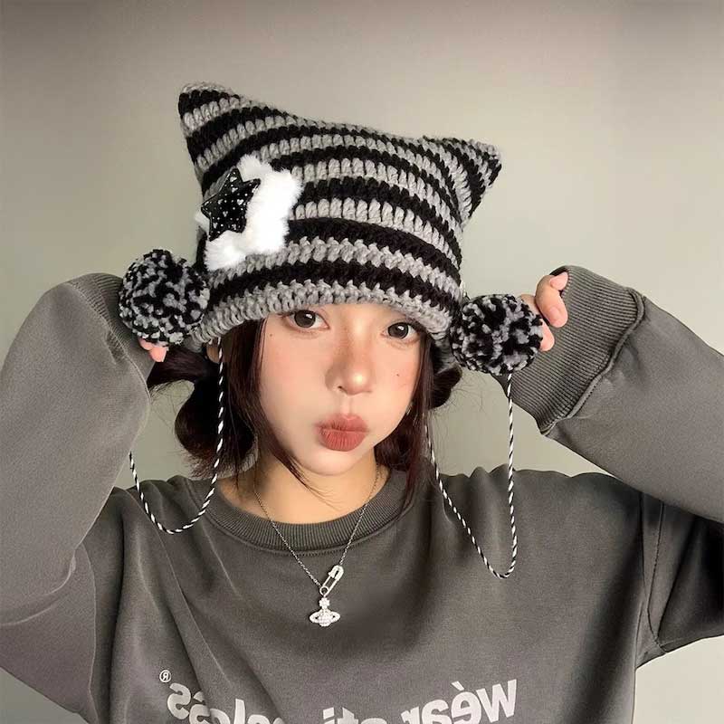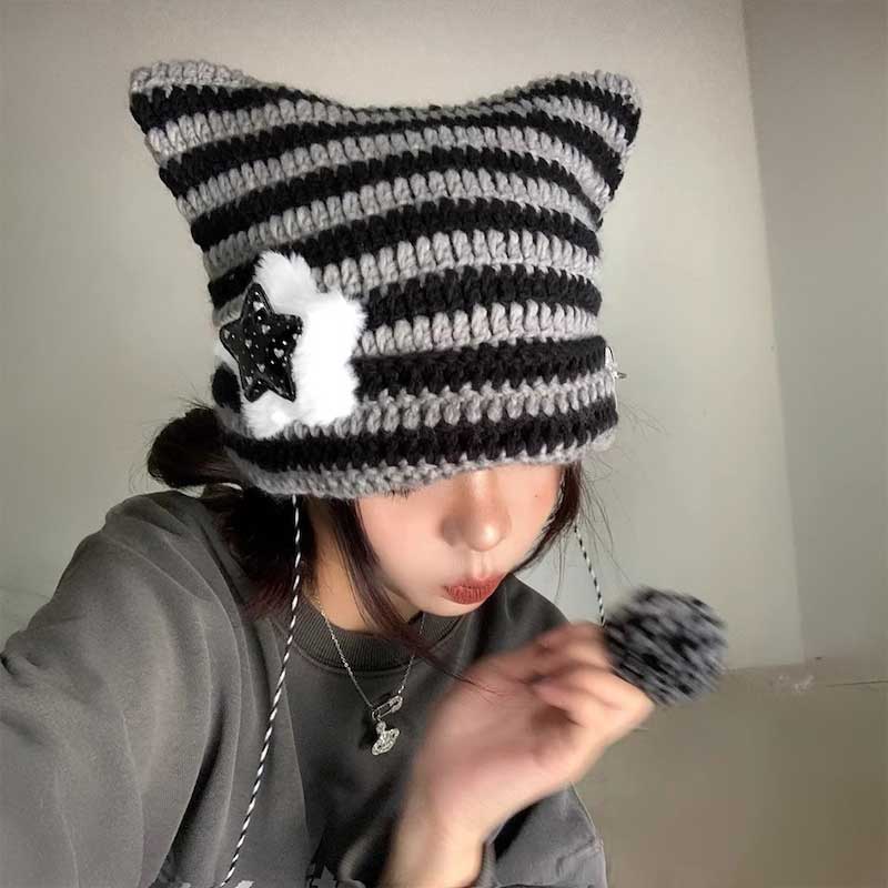 モノトーンスター猫耳ニット帽