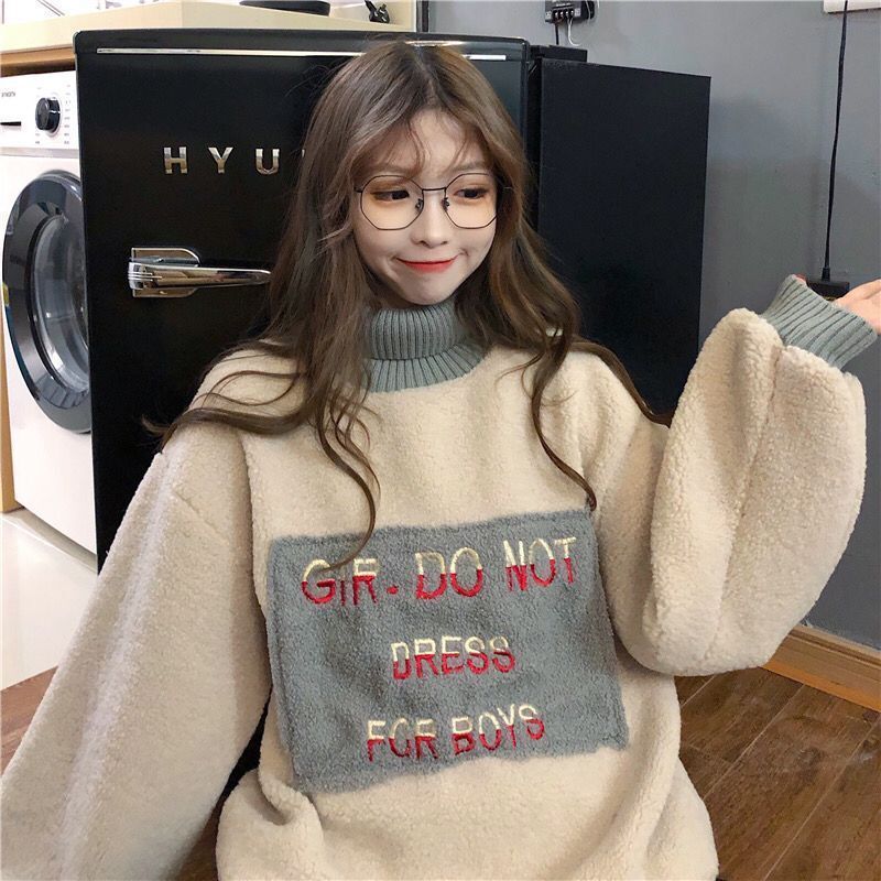 リブハイネックレイヤードボアトップス