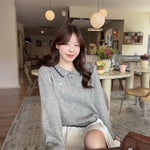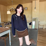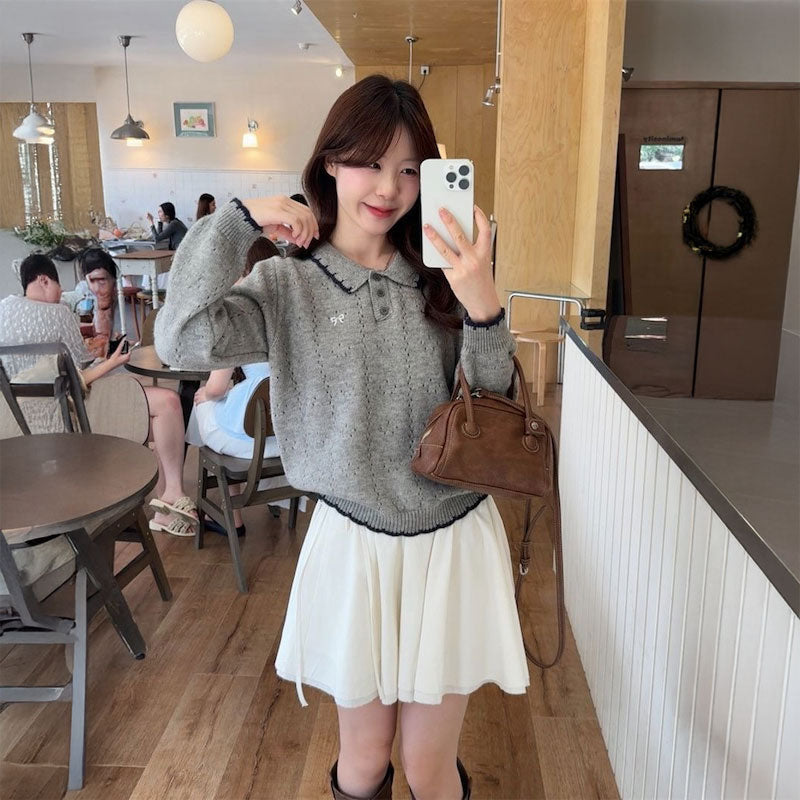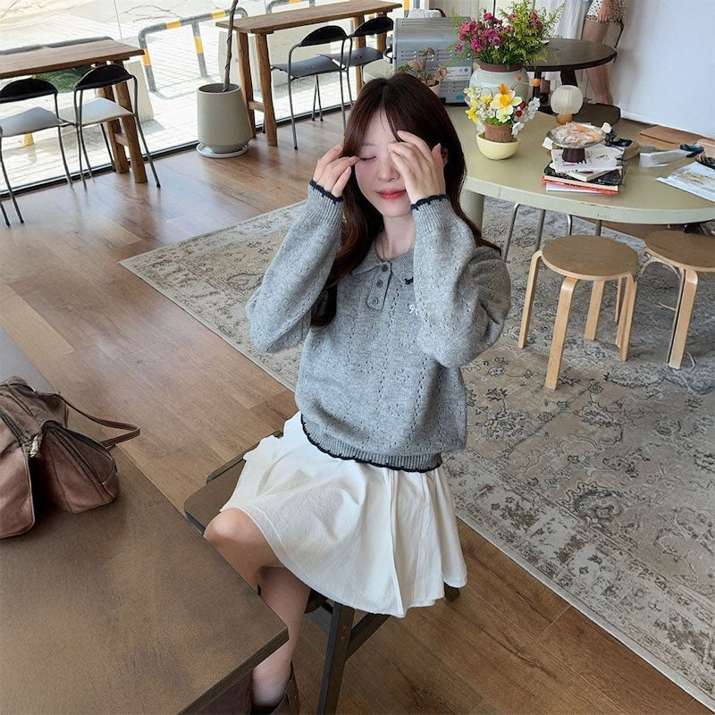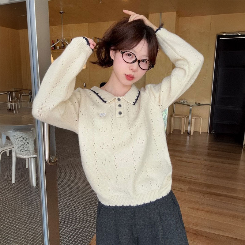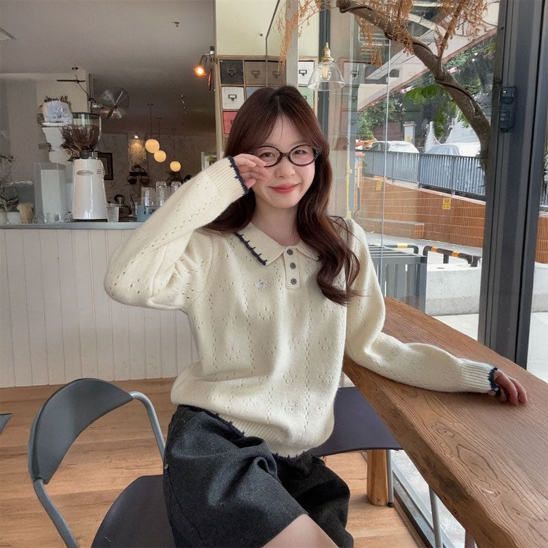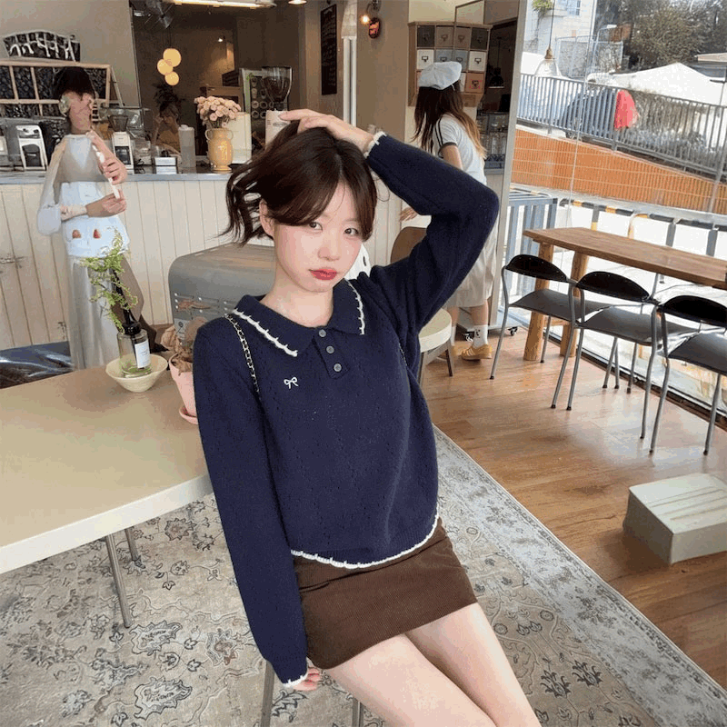 リボン刺繍ケーブルポロニット