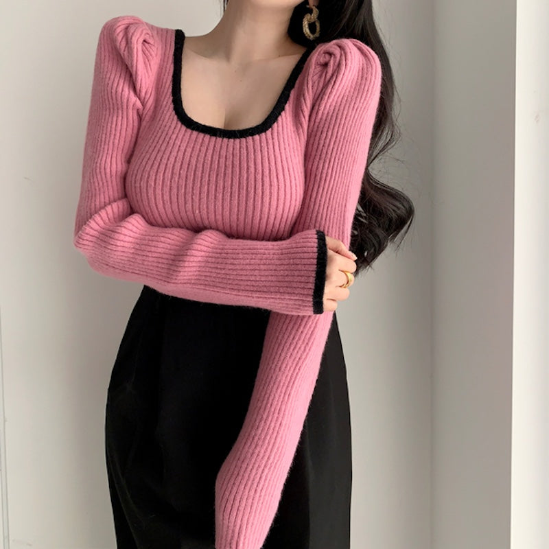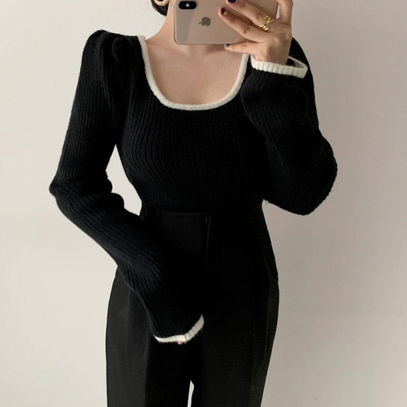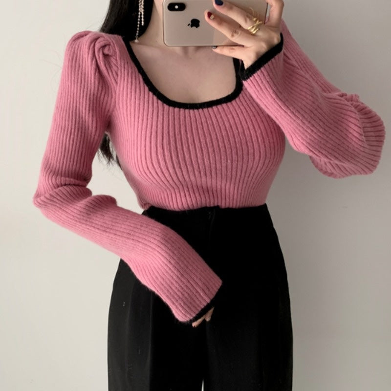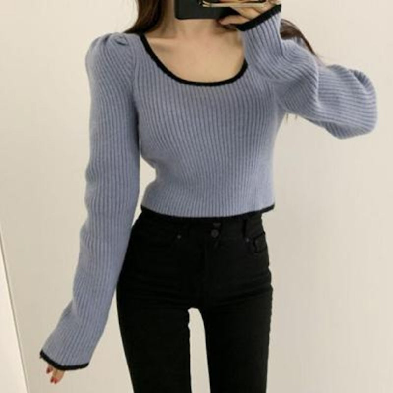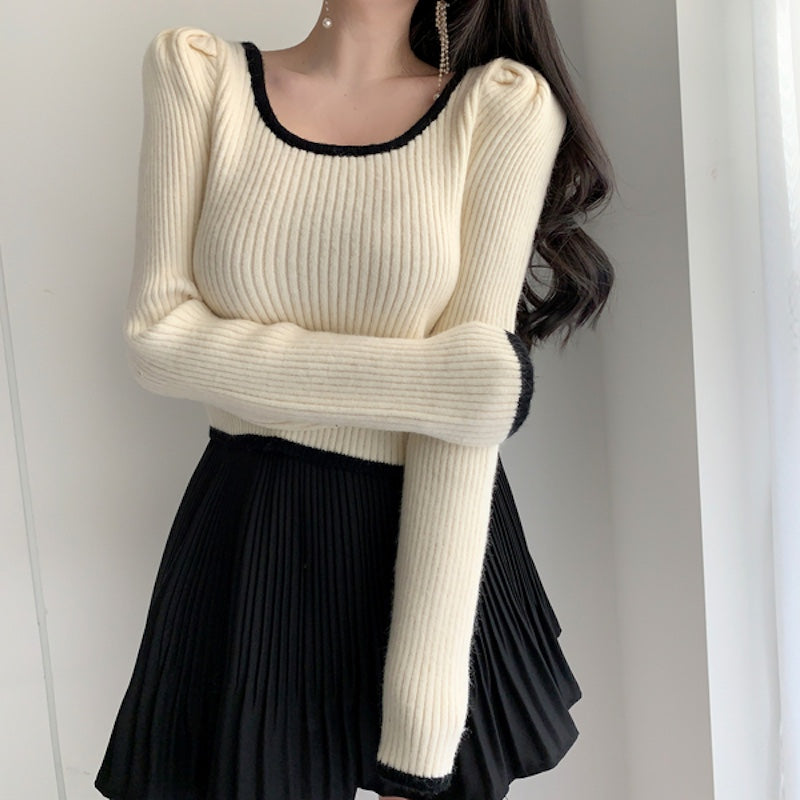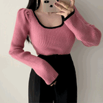 リンガーリブUネックニット