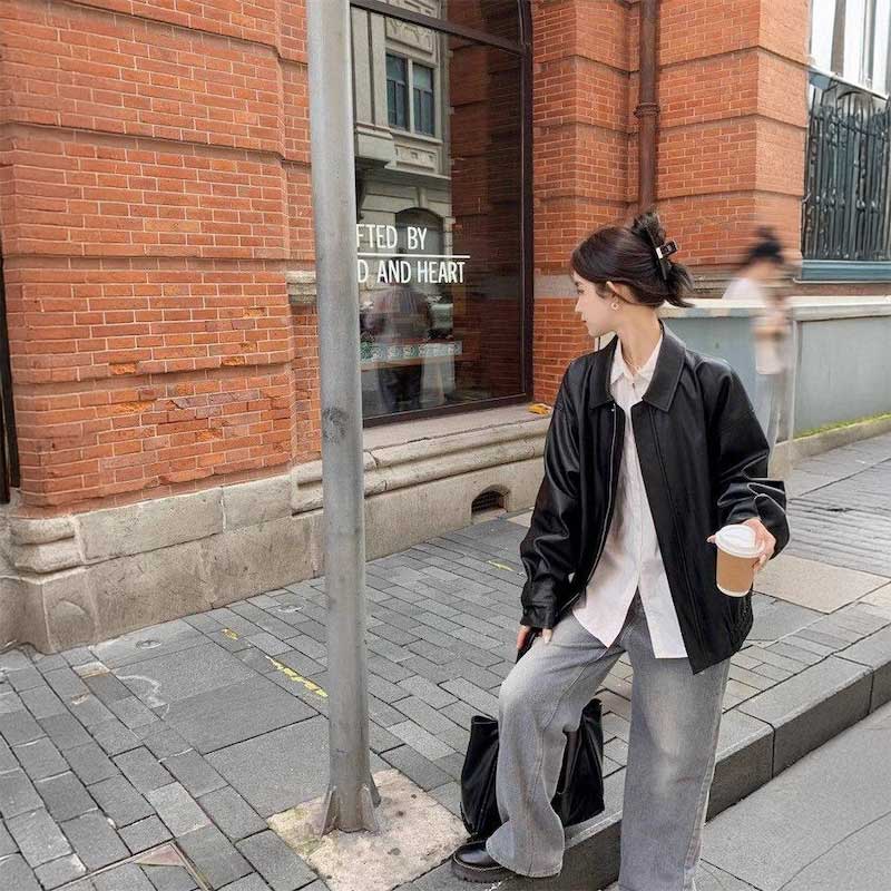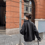ルーズオーバーレザータッチブルゾン