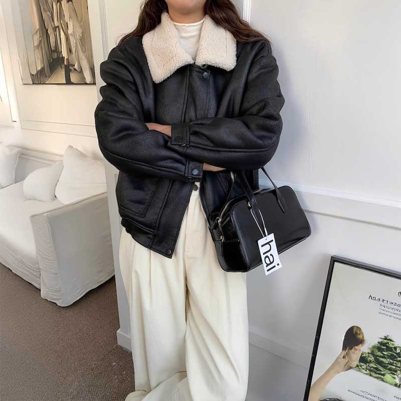 レザーボアブルゾン