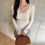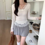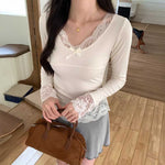 レースフリルリブトップス
