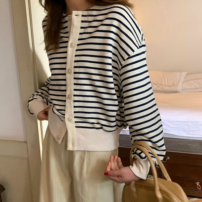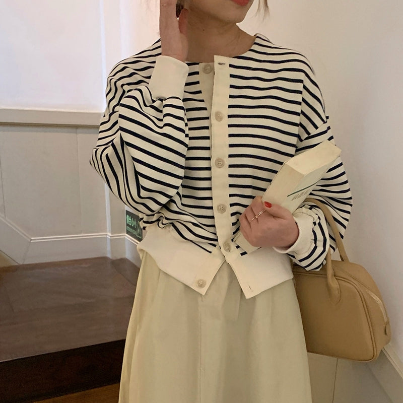 ローショルダーボーダーカーディガン