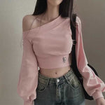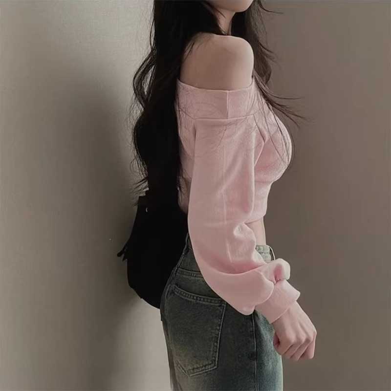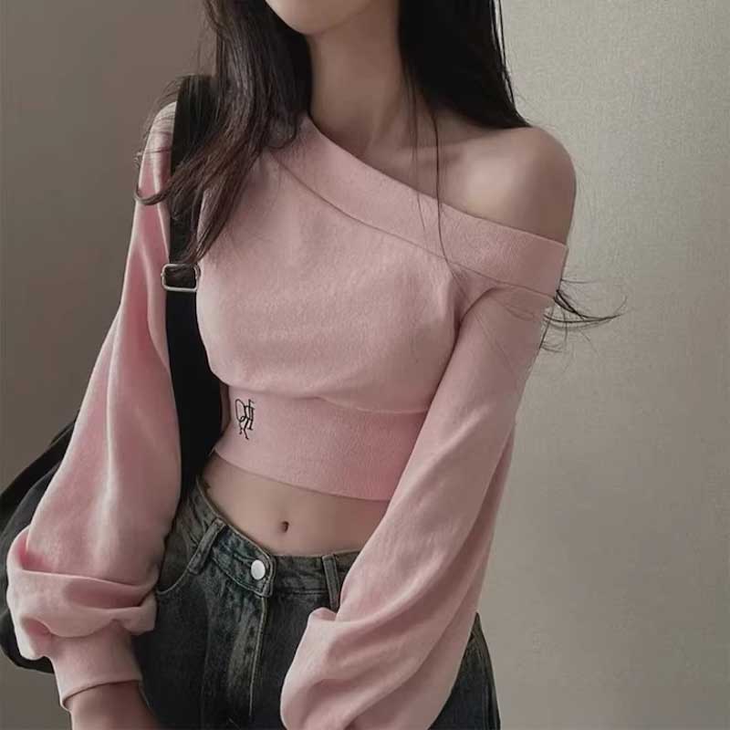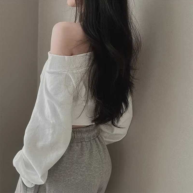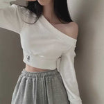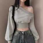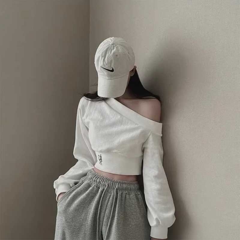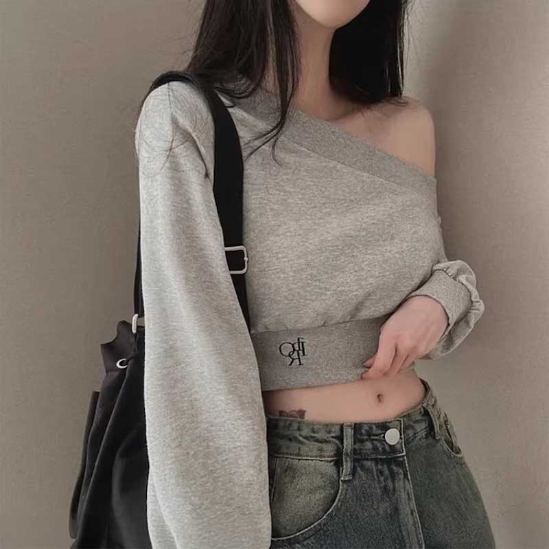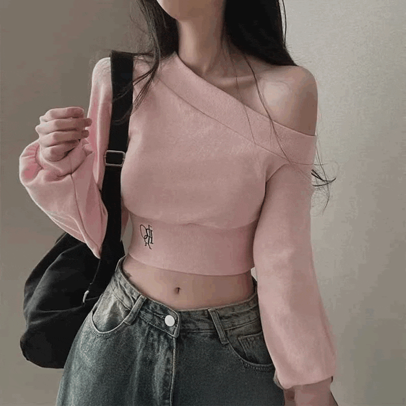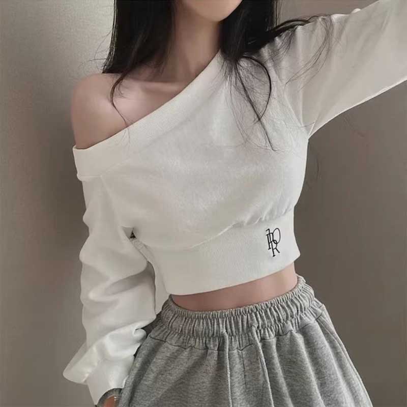 ワンショルダークロップドロゴスウェット