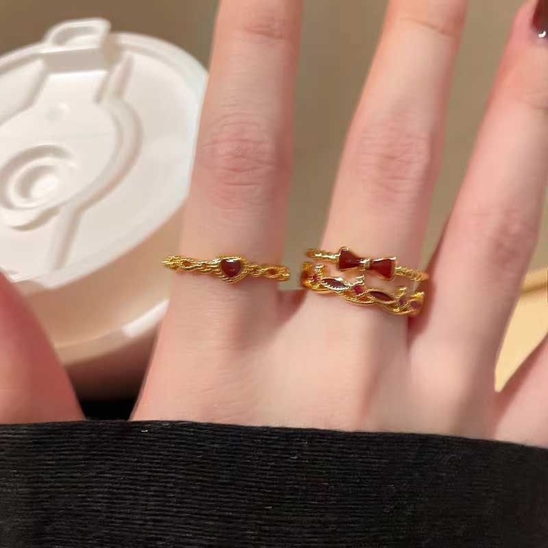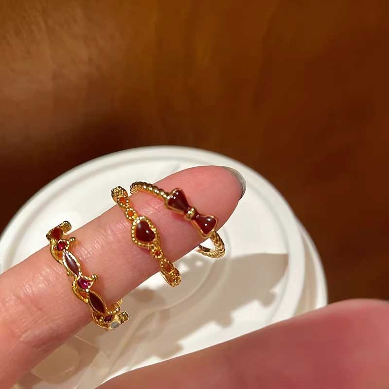 ヴィンテージレッドストーンリング3点SET
