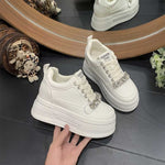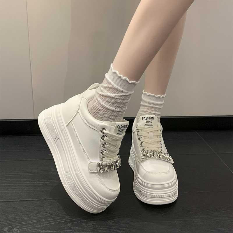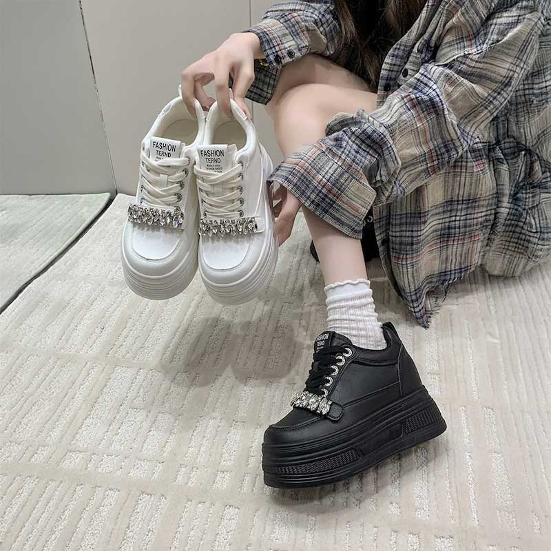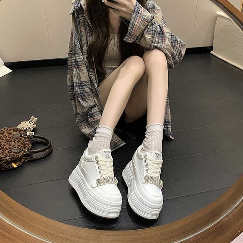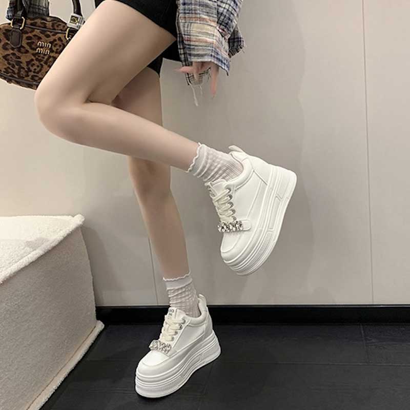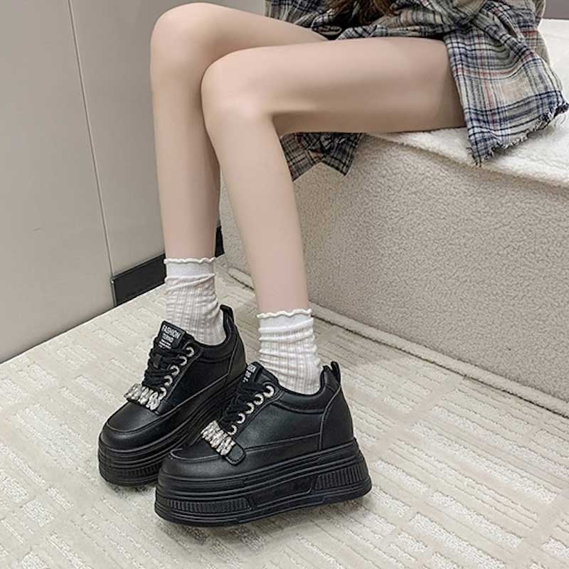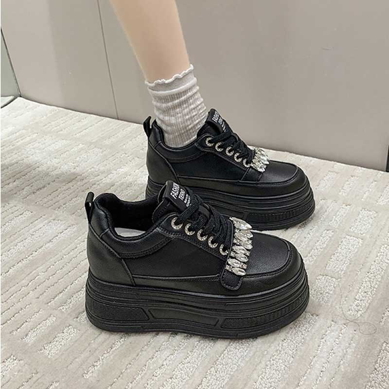 厚底ビジューレザースニーカー