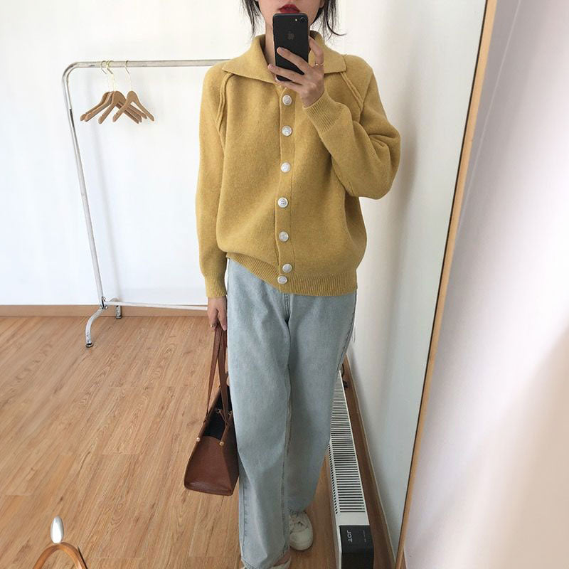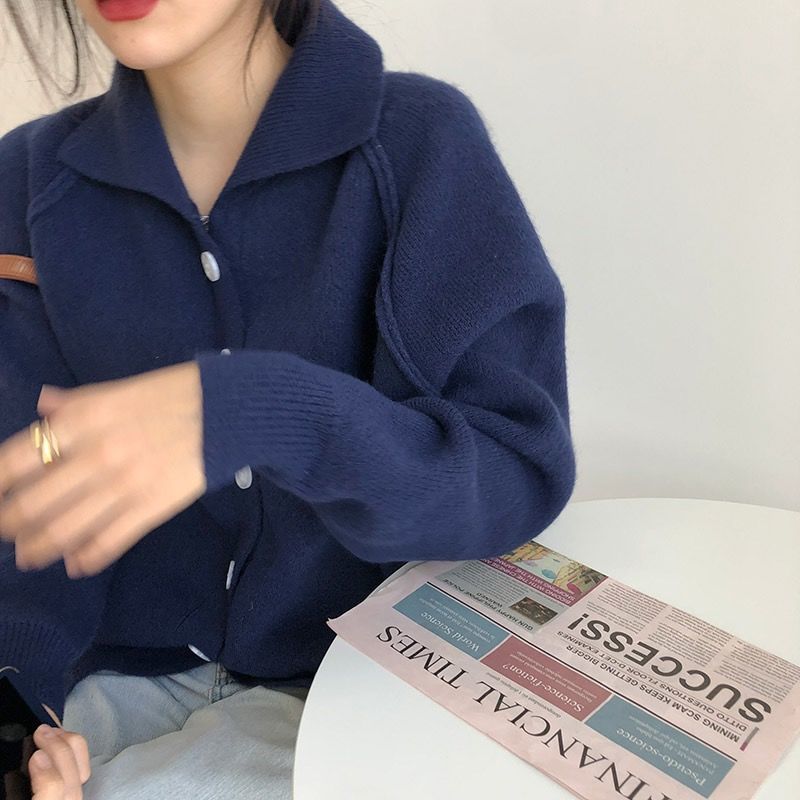 襟付きポロカーディガン