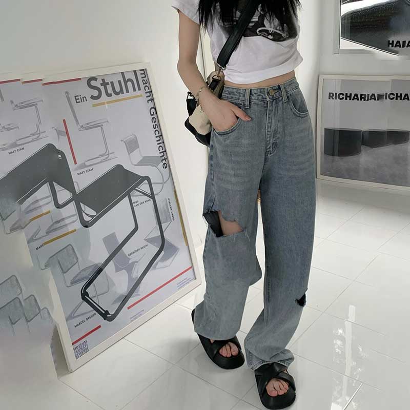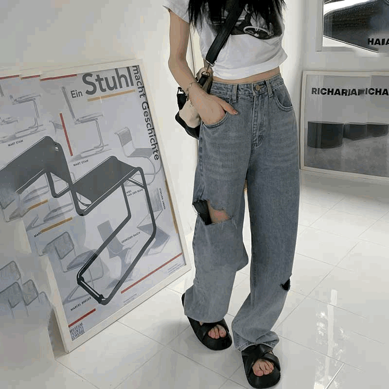 ハイウエストダメージデニム